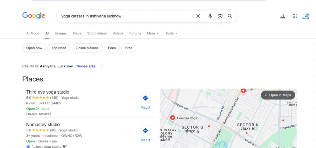 Third Eye Yoga Studio was struggling to appear in local searches despite offering quality yoga services. Their Google My Business (GMB) profile lacked proper optimization, had incomplete details, and wasn’t ranking for high-intent local keywords like “Yoga Studio in Lucknow” and “Yoga for Body Balance Ashiyana”. As a result, they were losing potential walk-in leads to competitors.